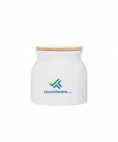 16.9 oz stoneware: matte white out / glossy white in with push-on bamboo lid; Hand wash recommended; Microwave safe with non-metallic imprint; 4 3/16 h x 4 3/16 (w/handle) w ; 500mL.