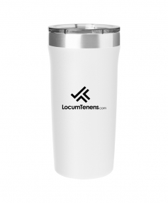 18 oz double wall 18/8 stainless steel thermal tumbler with vacuum insulation, brushed stainless steel rim, clear push-on acrylic lid with sliding closure, and powder coated finish. Hand wash recommended. Do not microwave. Complies with FDA, Prop 65. 7.25" H x 3.5" W