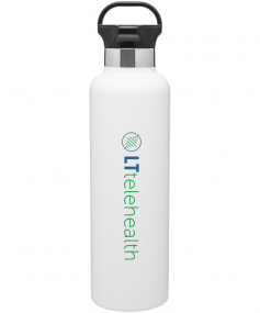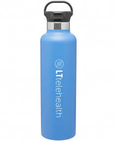 24 oz powder coated double wall 18/8 stainless steel thermal bottle with copper vacuum insulation, threaded gear-shaped insulated lid and carrying handle Complies with FDA, Prop 65. 11.25" H x 3" W