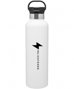 24 oz powder coated double wall 18/8 stainless steel thermal bottle with copper vacuum insulation, threaded gear-shaped insulated lid and carrying handle Complies with FDA, Prop 65. 11.25" H x 3" W