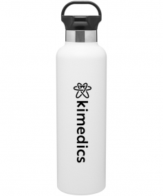 24 oz powder coated double wall 18/8 stainless steel thermal bottle with copper vacuum insulation, threaded gear-shaped insulated lid and carrying handle Complies with FDA, Prop 65. 11.25" H x 3" W