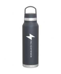 25 oz double wall 18/8 stainless steel thermal bottle with copper vacuum insulation, threaded insulated lid with carrying handle, high polish accent, stainless steel base, and powder coated finish. Hand wash recommended; Do not microwave. Dimensions: 10 H x 3".
