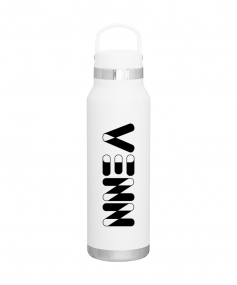 25 oz double wall 18/8 stainless steel thermal bottle with copper vacuum insulation, threaded insulated lid with carrying handle, high polish accent, stainless steel base, and powder coated finish. Hand wash recommended; Do not microwave. Dimensions: 10 H x 3".