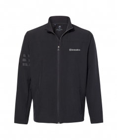 Made of 7.2 oz., 94/6 polyester/elastane plain weave. Has a durable water repellent finish. Features soft shell stretch fabric, half elastic cuffs, two front zip pockets. Complies with Prop 65.