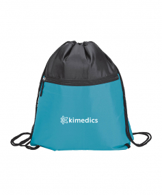 Sport bag with a contrast color front-zippered pocket, reinforced corners and a drawstring closure. Drawstrings double as backpack straps. 12 1/2" W x 15 1/2" H x 3/16" D.