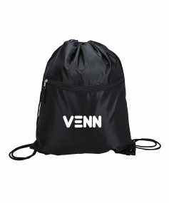 Sport bag with a contrast color front-zippered pocket, reinforced corners and a drawstring closure. Drawstrings double as backpack straps. 12 1/2" W x 15 1/2" H x 3/16" D.