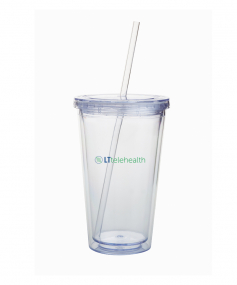 This high-quality 18 oz. sweatproof tumbler with double-wall insulation is perfect for your cold beverages. The screw-on lid comes with a removable drinking straw.