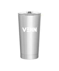 20 oz double wall 18/8 stainless steel thermal tumbler with vacuum insulation, and clear acrylic push-on swivel lid. Hand wash recommended. Do not microwave. Complies with FDA, Prop 65. 7.125" H x 3.75" W
