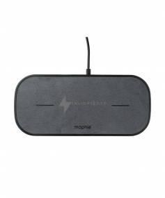The mophie® 10W Dual Wireless Charging Pad could charge three devices at the same time. Two wireless charging locations deliver up to 10W of power to two enabled devices and one extra USB-A port to charge a third wired device. If want to charge an iPhone series before iPhone 8 with wireless technology, an external wireless charging receiver or receiver case is required. It works with most plastic phone cases on. 4.9-ft long wall adapter is included. Packaged in a premium gift box. 0.43" H x 3.54" W x 7.87" L