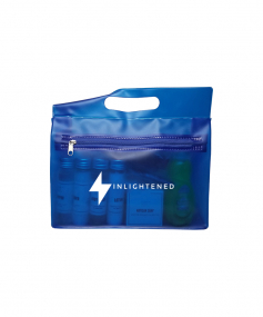 It's always the little things that are forgotten that are hard to find at your new place. We packed all the essentials into one handy tote. EST Shampoo, Conditioner, Body Wash, Lotion & Hand Soap, Old Spice and Dove Deodorants, Toothbrush, Colgate Toothpaste, Whispermint Mouthwash, Brush/Comb, Band Aids, Advil packet, Emergen-C Drink Packs, Alka Seltzer, Baby Wipes, Cotton Balls/Qtips, Tide Laundry Packet and Palmolive Dishwashing Soap. 9 1/2" W x 8" H x 2 3/4" D